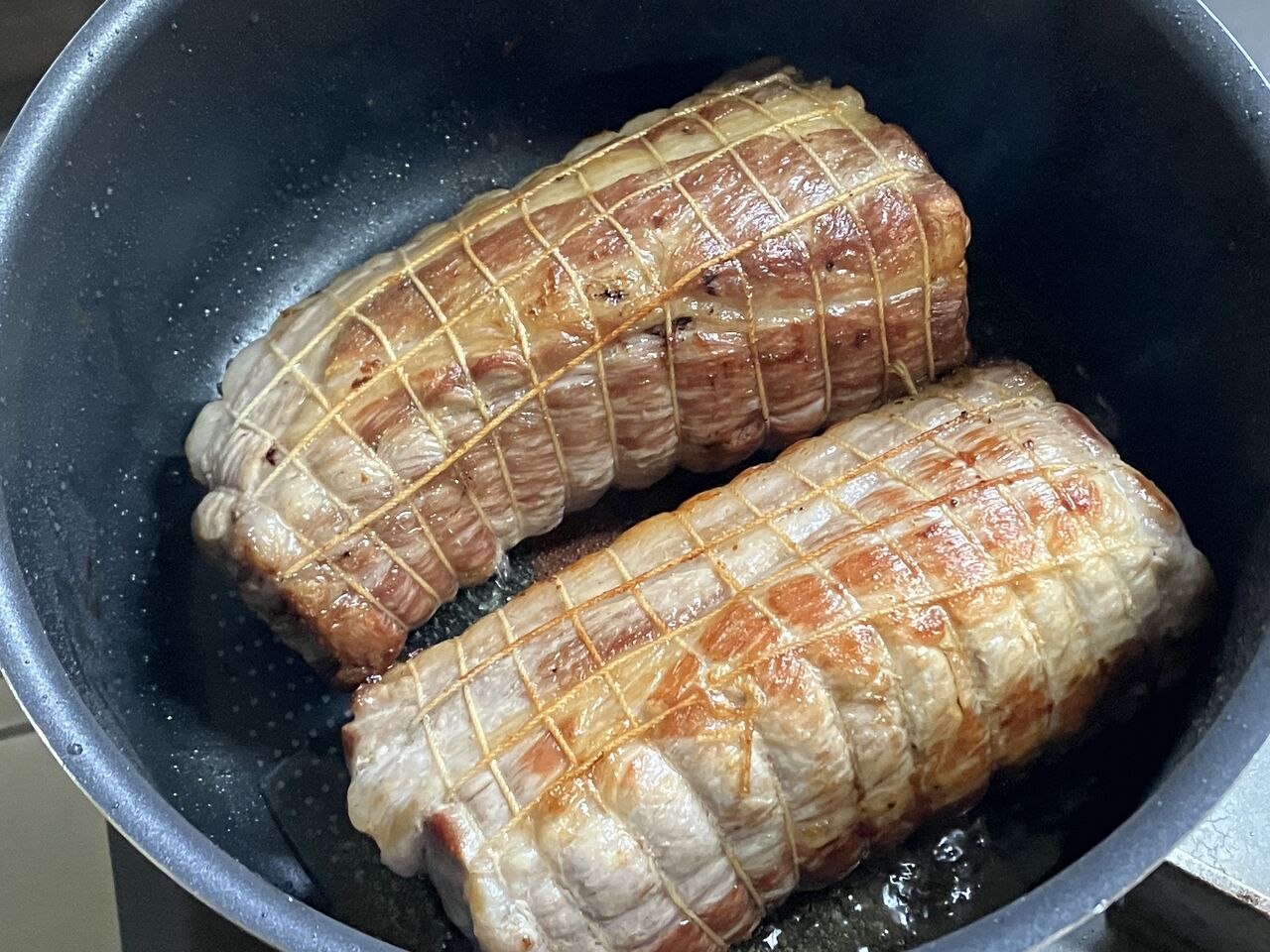 まずは、豚肩ロースをタコ糸にて巻き巻き。
