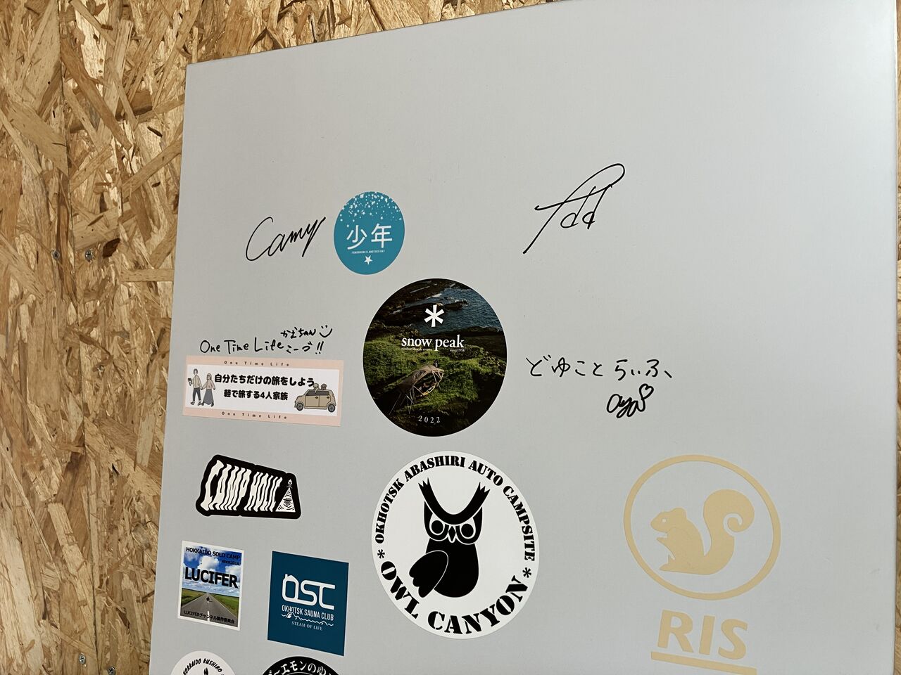同封されていたステッカーはキャンプ場のボードに貼らせて頂きました!