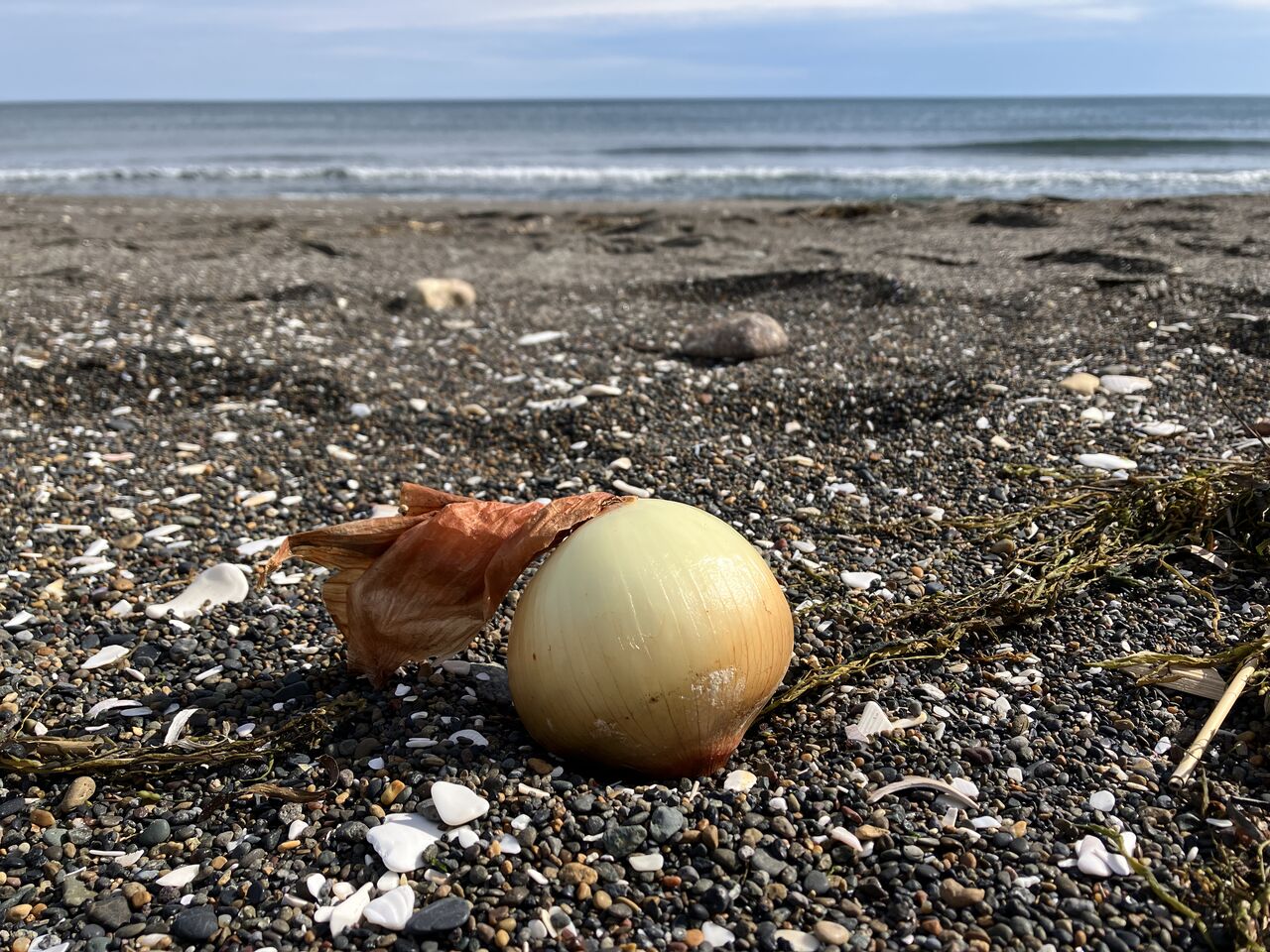 なぜ砂浜にあるのかは分かりませんが、素敵な玉ねぎ!