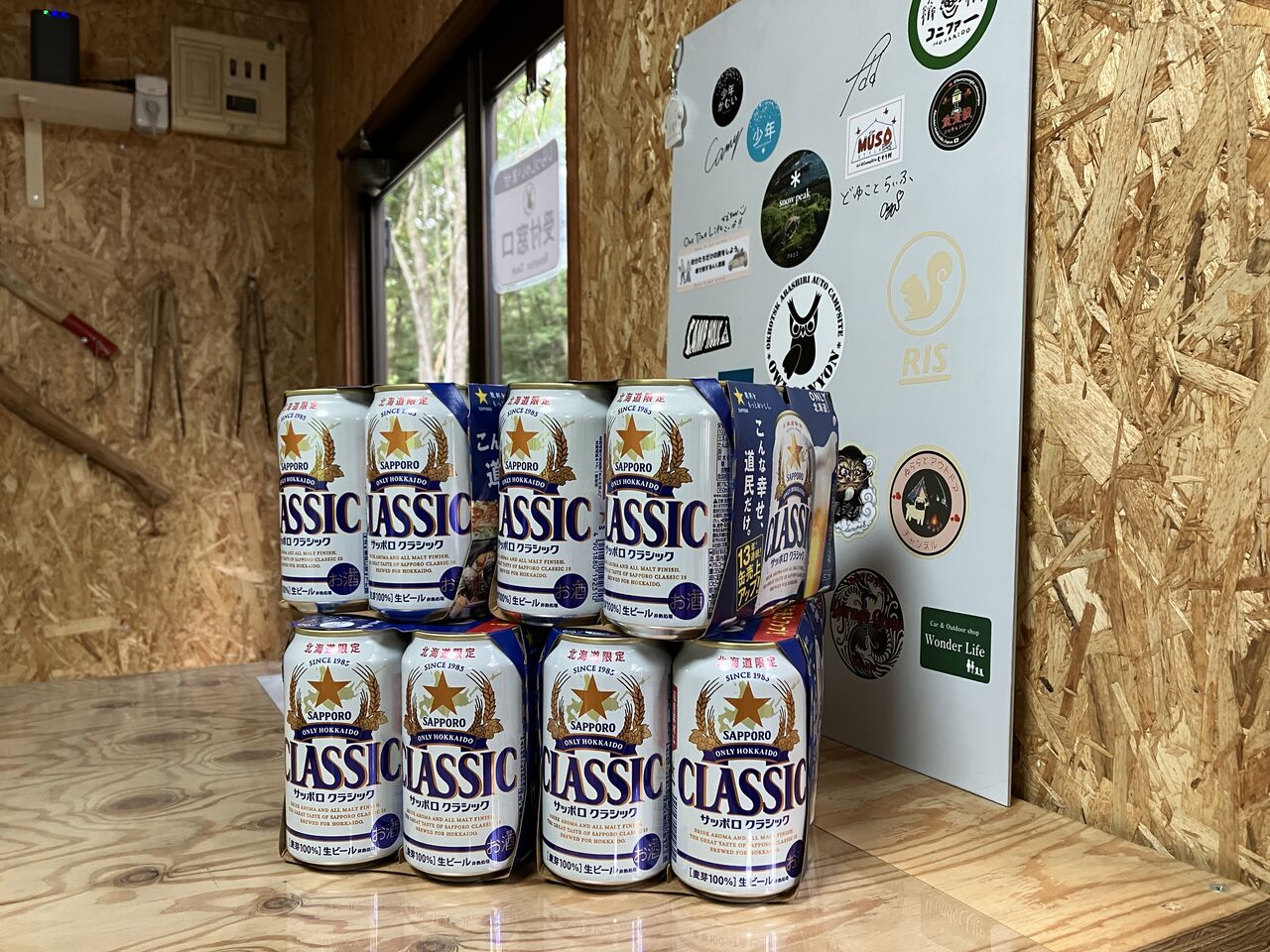 雨音と焚き火のはぜる音がなんとも心地よくて、のんびりビールを片手にぼーっとしてます。