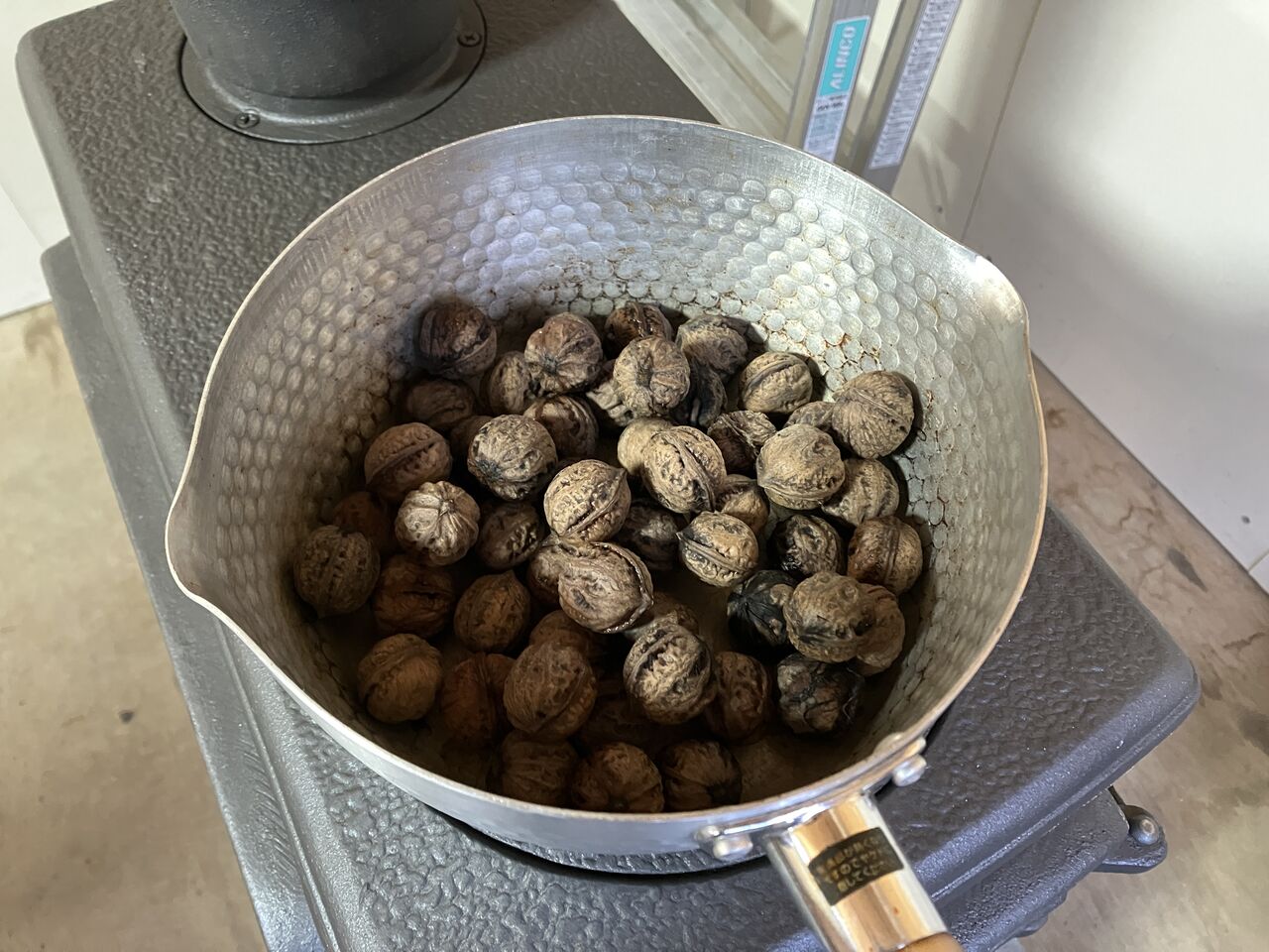 薪ストーブの上で炒り炒り.。゚+.(・∀・)゚+.゚
