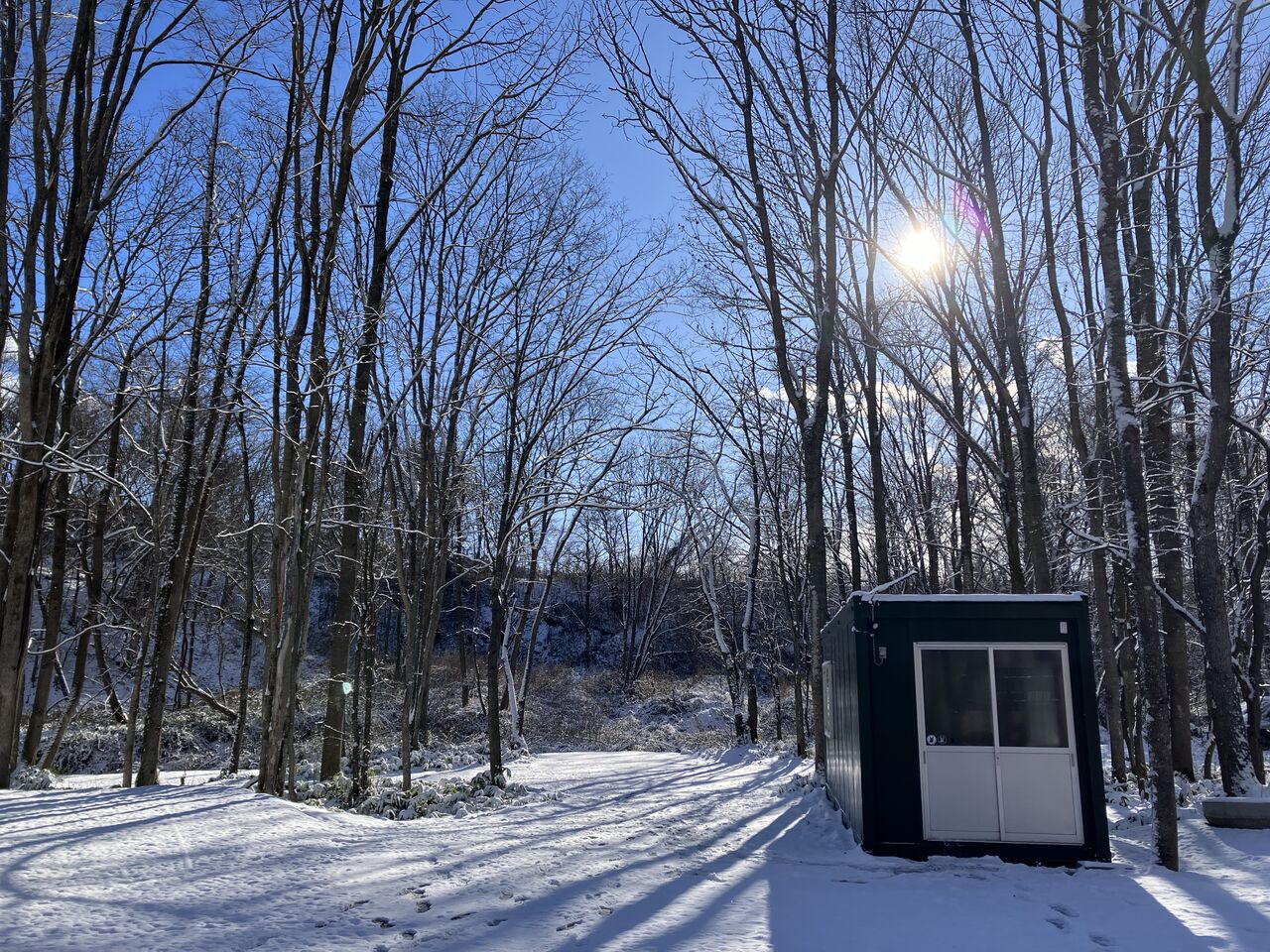 久しぶりの凍結道路にビビりながら、無事キャンプ場「ふくろうの渓谷」に出勤。