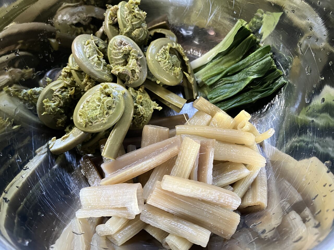 保存しておいた山菜は、こごみ・わらび・行者にんにく・ふき・たけのこ